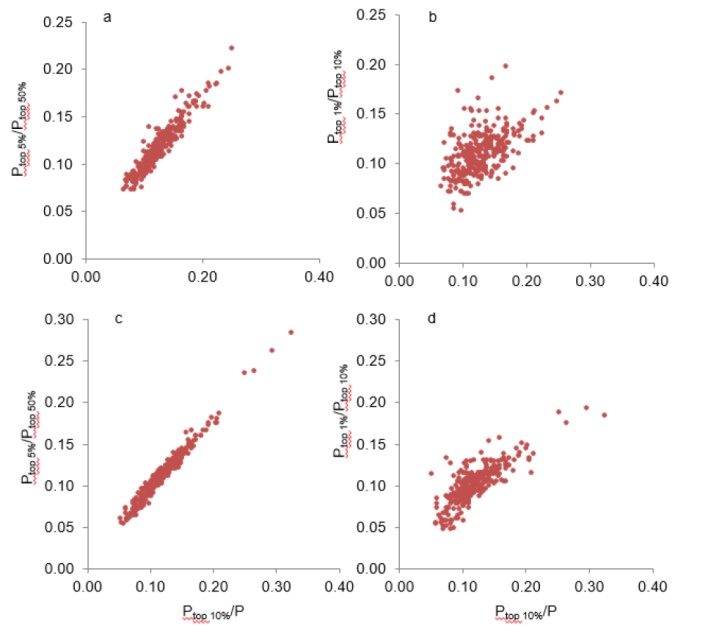 Table 1. Basic description of scientific publications in terms of P, Ptop 10%/P, and Ptop 1%/ Ptop 10% in 18 selected cases. |