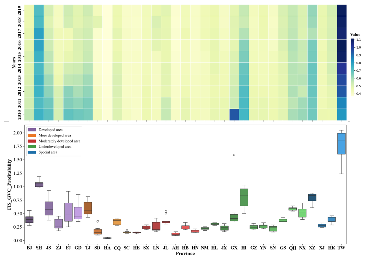 Figure 7. Global Value Chain Profitability of FIS by Province in China. |