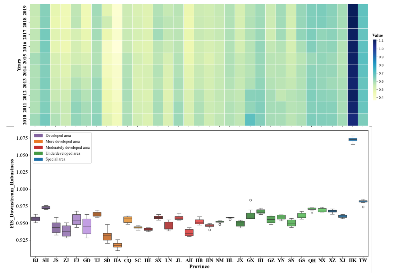 Figure 8. Downstream Value Chain Robustness of FIS by Province in China. |