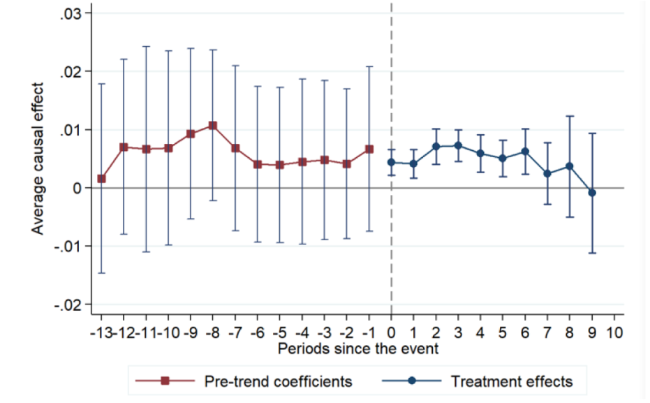 | _cons | 0.0018 | 0.0049 | -0.0017 | -0.0052 |