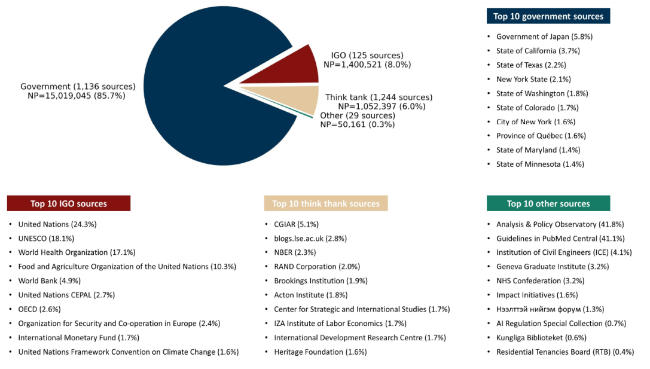 | Source type | The categories of policy sources. Overton classifies policy sources into three main types: “government”, “think tank” and “intergovernmental organization (IGO)” (Overton, 2024h). Additionally, Overton tracks policy documents from “other” sources, including open repositories and non-governmental organizations (NGOs). |